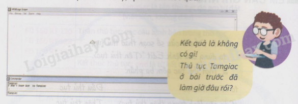 a) Khởi động Logo, thực hiện thủ tục Tamgiac (gõ Tamgiac vào ngăn gõ lệnh rồi nhấn phím Enter), quan sát kết quả.