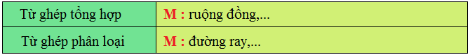 Tìm 3 từ ghép tổng hợp, 3 từ ghép phân loại trong các từ ghép (được in đậm) và xếp vào ô thích hợp: