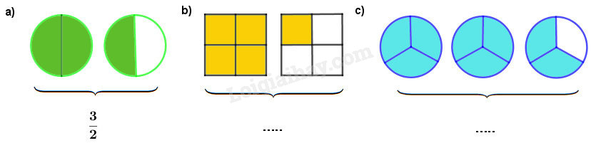 Viết rồi đọc hỗn số chỉ phần đã tô màu của mỗi hình vẽ sau :