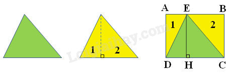 Nhận xét về diện tích hai hình tam giác ban đầu và diện tích hình chữ nhật.