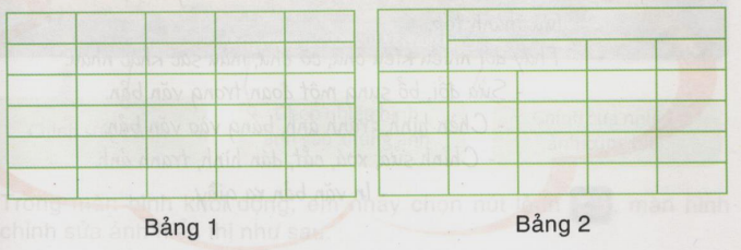 b) Chỉnh sửa bảng đã tạo ở hoạt động a thành Bảng 1 và Bảng 2 theo mẫu