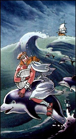 – Bầy cá heo đã cứu A-ri-ôn khi ông nhảy xuống biển và đưa ông trở về đất liền.