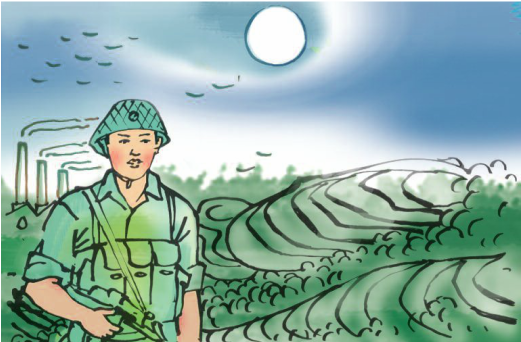 Gợi ý: Em hãy quan sát cảnh vật và hình ảnh anh chiến sĩ trong bức tranh để trả lời câu hỏi.