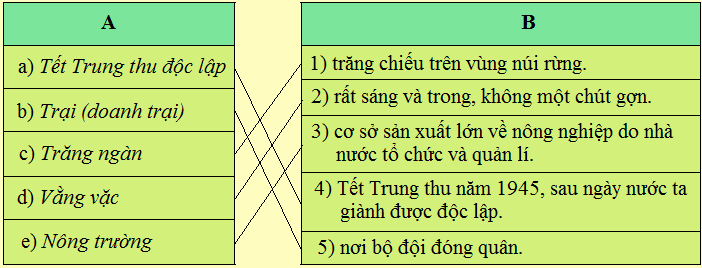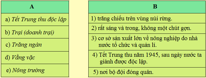 Chọn lời giải nghĩa ở cột B phù hợp với từ ngữ ở cột A.