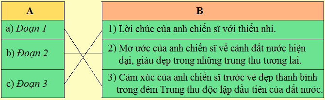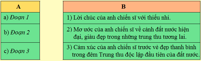 1) Tìm ý chính ở cột B cho mỗi đoạn ở cột A: