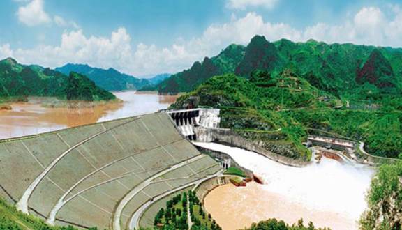 Quan sát bức tranh về đập thuỷ điện Hoà Bình dưới đây: