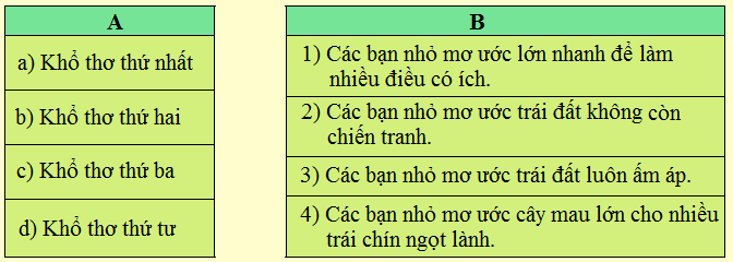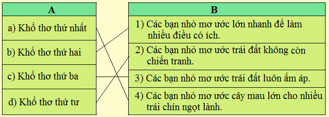 Tìm ý chính ở cột B cho mỗi khổ thơ ở cột A: