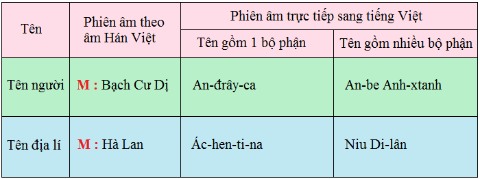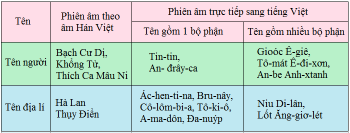 – Tên người: Bạch Cư Dị, Khổng Tử, Thích Ca Mâu Ni, Tin-tin, Gioóc È-giê, An-đrây-ca, Tô-mát Ê-đi-xơn, An-be Anh-xtanh.