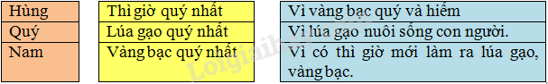 – Theo bạn Hùng, quý nhất là ……. vì ……….