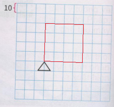 Vẽ đường đi của Rùa vào hình dưới theo các lệnh sau. Biết rằng mỗi ô vuông trong hình có cạnh là 10 bước. Kiểm tra lại kết quả trên máy tính.