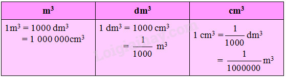 Nhẩm lại mối quan hệ giữa ba đơn vị thể tích đã học : mét khối, đề-xi-mét khối, xăng-ti-mét khối.