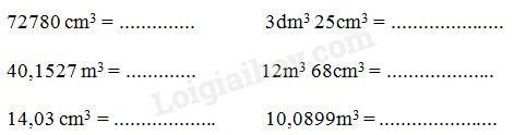 Viết các số đo sau dưới dạng số thập phân có đơn vị là mét khối: