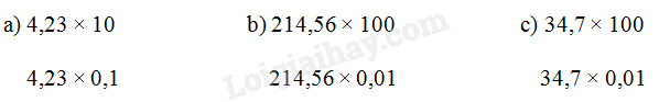 – Muốn nhân một số thập phân với 0,1; 0,01; 0,001; … ta chỉ việc chuyển dấu phẩy của số đó lần lượt sang bên trái một, hai, ba, … chữ số.