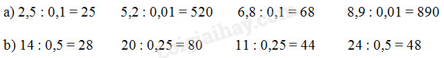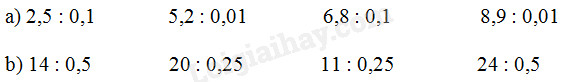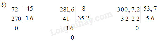 – Áp dụng các quy tắc đã học về phép chia số thập phân để thực hiện các phép chia ở câu b.