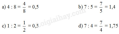 Làm tương tự ví dụ mẫu, viết phép chia dưới dạng phân số rồi viết dưới dạng số thập phân.