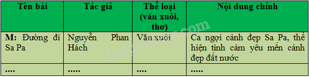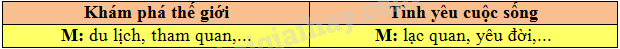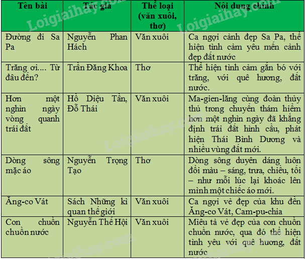 Em xem lại nội dung các bài để hoàn thành bảng.