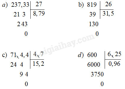 – Vận dụng kiến thức về phép chia số thập phân đã học rồi thực hiện phép tính.