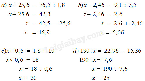 a) \(x + 25,6 = 76,5 : 1,8\)