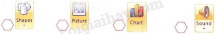 Để chèn âm thanh vào bài trình chiếu, em chọn nút lệnh nào trong thẻ Insert?