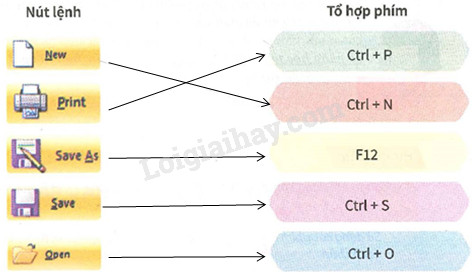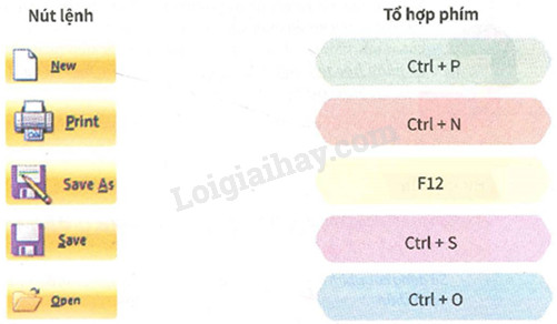 Giải phần A. Kết nối bài học bài 5 trang 35, 36 sách bài tập hướng dẫn học tin học lớp 5. Nút lệnh với tổ hợp phím tương ứng.