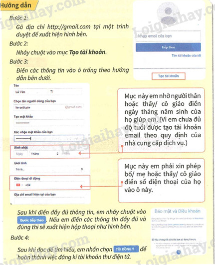 Em hãy thử hiện đăng kí tài khoản thư điện tử