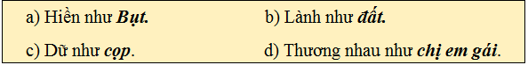 Chọn từ ngữ trong ngoặc đơn (đất, cọp, Bụt, chị em gái) điền vào chỗ trống đế hoàn chỉnh các thành ngữ sau:
