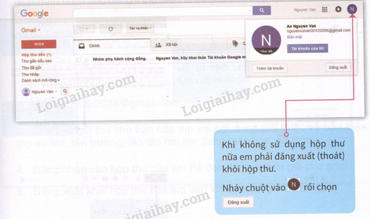 Đăng xuất khỏi hộp thư của em sau khi đọc xong thư của bạn gửi.