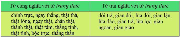 Trò chơi: Chọn từ cùng nghĩa, trái nghĩa với từ trung thực