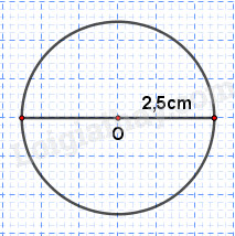 + Đặt mũi kim vào điểm O, áp đầu chì sát vào mặt giấy quay đúng một vòng. Ta được hình tròn tâm O có bán kính 3cm (hoặc hình tròn tâm O có bán kính 2,5cm).