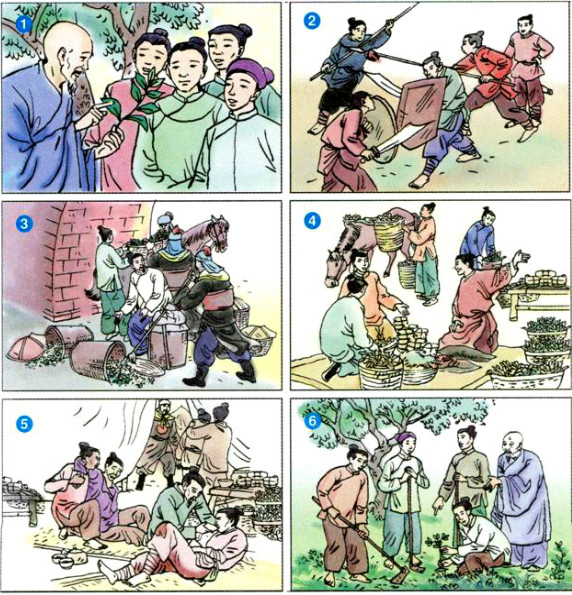 Tranh 4: Các thái y của ta toả đi khắp mọi miền quê học cách chữa bệnh trong dân gian