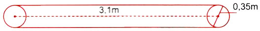 Một sợi dây nối hay bánh xe ròng rọc. Đường kính của bánh xe có độ dài 0,35m. Hai trục cách nhau 3,1m. Tính độ dài sợi dây.
