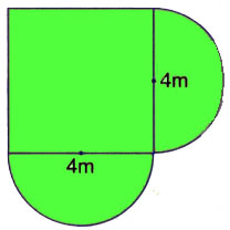 – Chu vi bồn hoa bằng tổng chiều dài của hai cạnh hình vuông và chu vi hai nửa hình tròn đường kính 4m.
