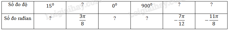 1, \({15^0} = 15.\frac{\pi }{{{{180}^0}}} = \frac{\pi }{{12}}\).
