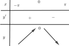 Xét trên đoạn \(\left[ { – \pi ;\pi } \right]\) ta có bảng biến thiên:
