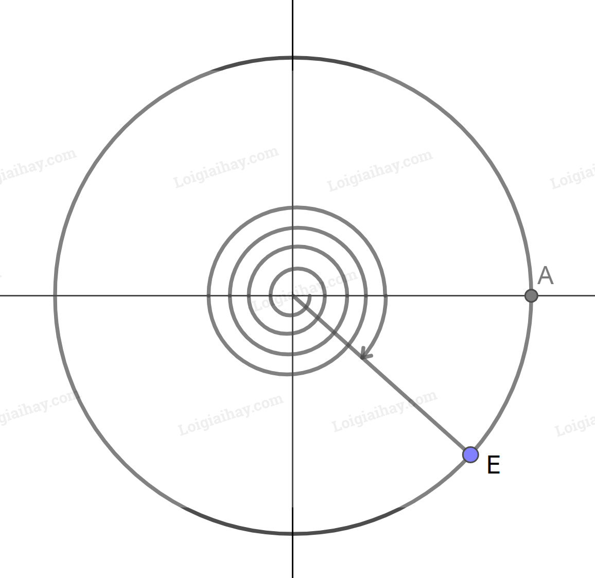 a) Điểm E trên đường tròn lượng giác biểu diễn góc lượng giác có số đo \( – \frac{{41\pi }}{4}\) được xác định như trên hình.