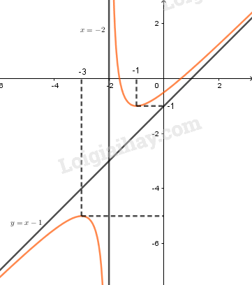 \(\mathop {\lim }\limits_{x \to  \pm \infty } \left[ {y – \left( {x – 1} \right)} \right] = \mathop {\lim }\limits_{x \to  \pm \infty } \frac{1}{{x + 2}} = 0\) nên TCX: \(y = x – 1\).