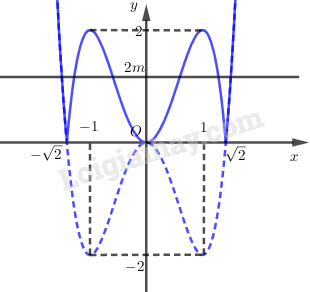 Ta có: \({x^2}|{x^2} – 2| = m\)\( \Leftrightarrow 2{x^2}\left| {{x^2} – 2} \right| = 2m\)\( \Leftrightarrow \left| {2{x^2}\left( {{x^2} – 2} \right)} \right| = 2m\)\( \Leftrightarrow \left| {2{x^4} – 4{x^2}} \right| = 2m\)