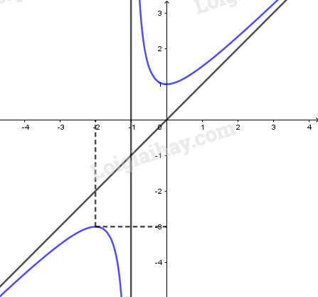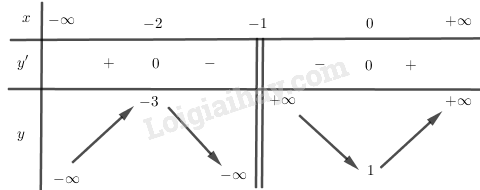 \(\mathop {\lim }\limits_{x \to {{\left( { – 1} \right)}^ + }} y =  + \infty ,\mathop {\lim }\limits_{x \to {{\left( { – 1} \right)}^ – }} y =  – \infty \) nên TCĐ: \(x =  – 1\).