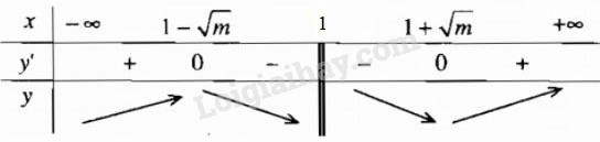 Hàm số nghịch biến trên mỗi khoảng \(\left( {1 – \sqrt m ;1} \right)\) và \(\left( {1;1 + \sqrt m } \right)\).