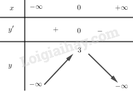 Hàm số đạt cực đại tại \(x = 0,{y_{CD}} = 3\).