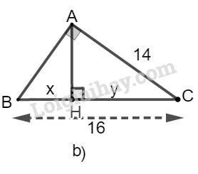 \(\Rightarrow {14^2} = y.16 \Rightarrow y = \dfrac{{{{14}^2}}}{{16}}\)\( = \dfrac{{196}}{{16}} = 12,25\)