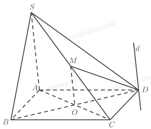 \( \Rightarrow \) Giao tuyến của hai mặt phẳng \(\left( {OMD} \right)\) và \(\left( {SAD} \right)\) là đường thẳng \(d\) đi qua điểm \(D\), song song với \(OM\) và \(SA\).
