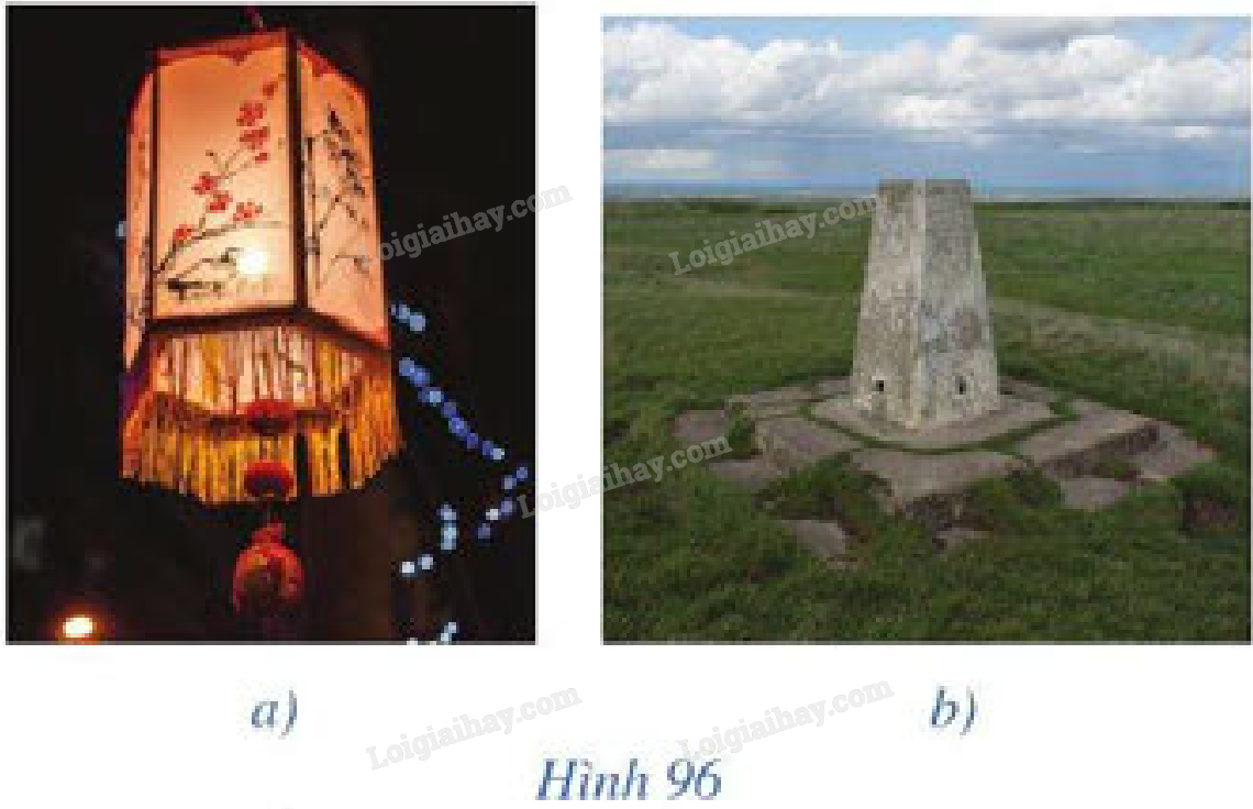 Quan sát và cho biết chiếc đèn treo ở Hình 96a, trạm khảo sát trắc địa ở Hình 96b có dạng hình gì.