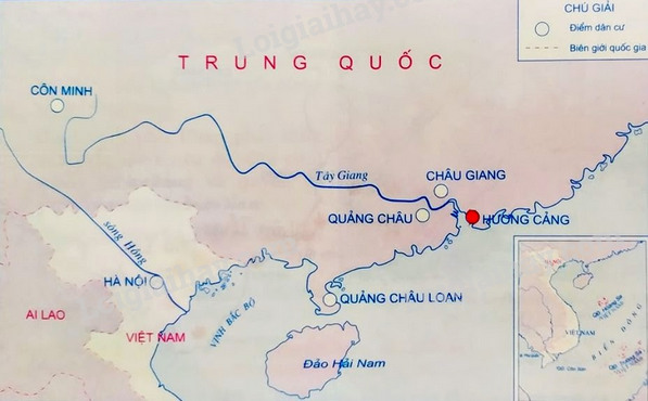 Dựa vào lược đồ dưới đây, em hãy tô màu đỏ vào khuyên tròn tại địa danh Hương Cảng (Trung Quốc)