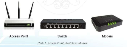 – Thực hiện cắm cáp vào các thiết bị mẫu như Switch, Access Point và Modem (Hình 1).