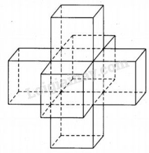 Lấy 7 khối lập phương có cùng kích thước rồi ghép lại với nhau như hình vẽ, ta được khối đa diện có 30 mặt đều là hình vuông.