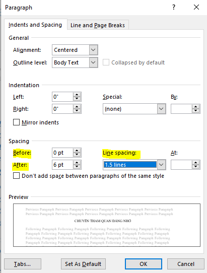Hộp thoại Paragraph hiện ra: