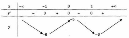 Hàm số đồng biến trên mỗi khoảng \(\left( { – \infty ; – 1} \right)\) và \(\left( {0; + \infty } \right)\) nghịch biến trên khoảng \(\left( { – 1;0} \right)\).