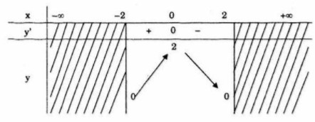 Hàm số đồng biến trên khoảng \(\left( { – 2;0} \right)\) và nghịch biến trên khoảng \(\left( {0;2} \right)\) .
