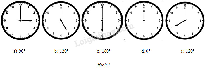Nhận xét: Hai số liên tiếp trên đồng hồ tạo với tâm góc \(30^\circ \), từ đó ta xác định góc theo yêu cầu.